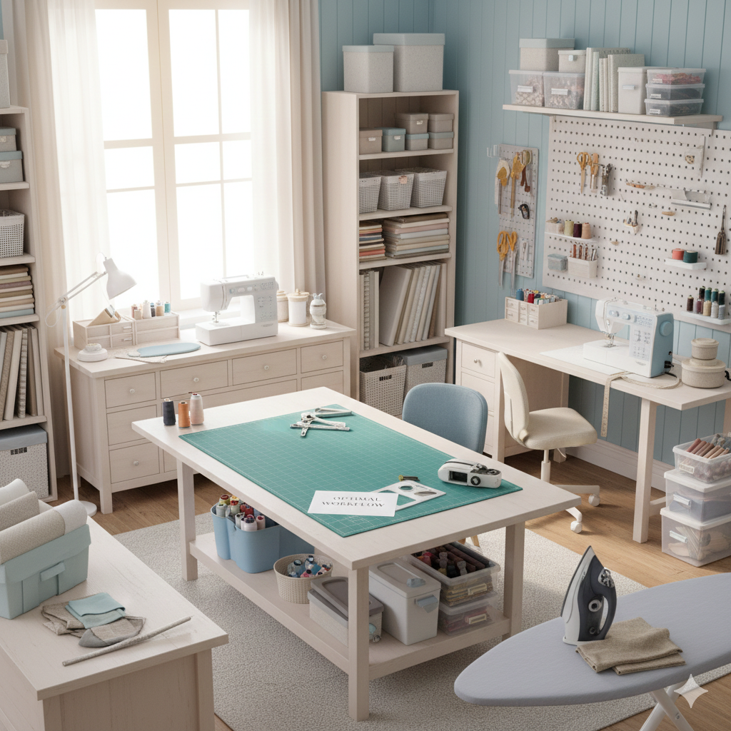 The most efficient sewing rooms are organized into dedicated zones. Think of your room not as one space, but several mini-stations.